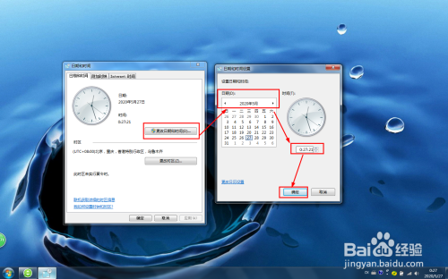 在日期和时候选项中点击:更改日期和时候——按摆布箭头更改日期——在时候那边按上下箭头调节时候或直接输入时候——还可以点击更改日历设置进行相关设置。