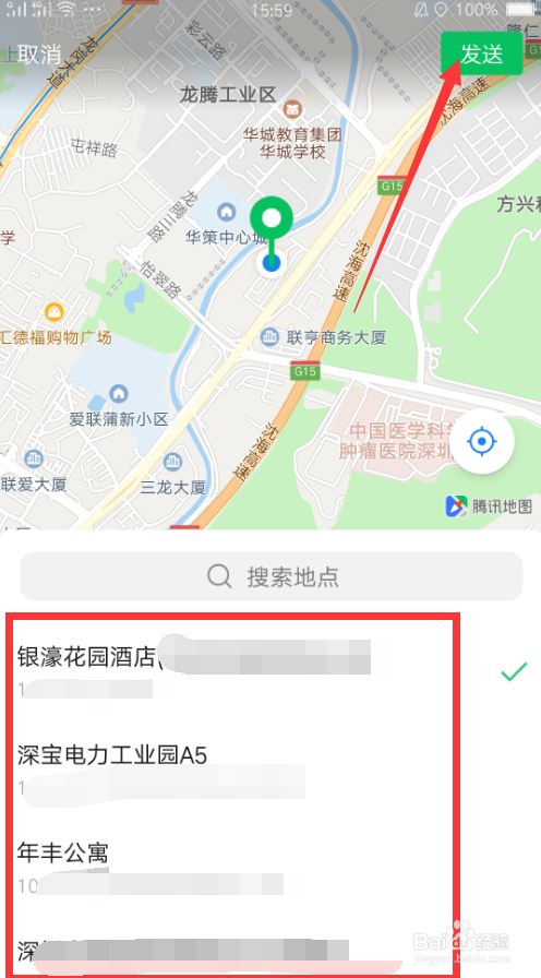 进入位置界面后,选择需要发送的位置,然后点击“发送”。