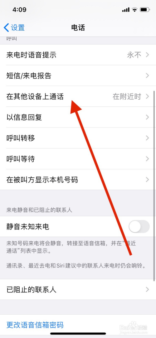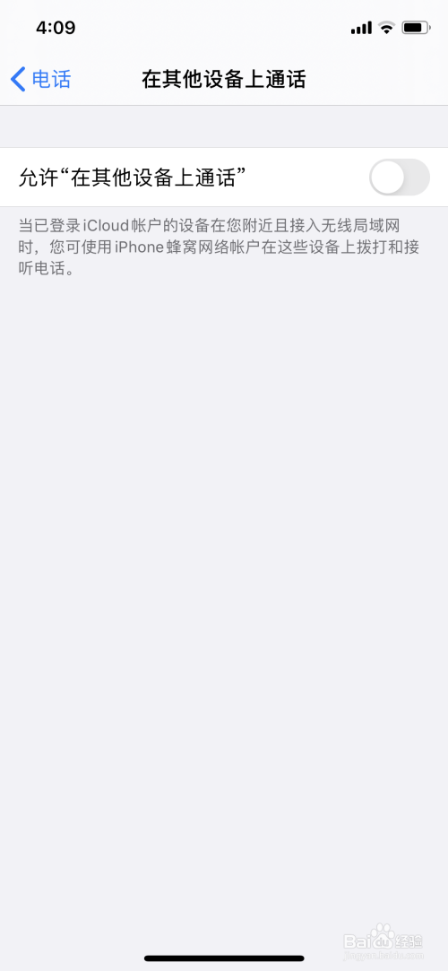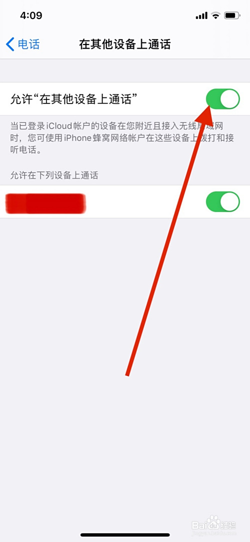 点击许可“在其他设备上通话”旁开启封闭圆点。