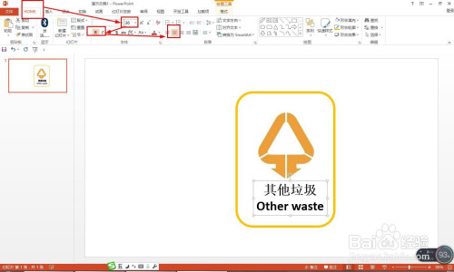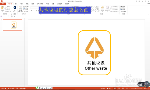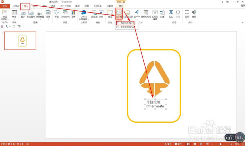然后点击插入——文本框——横排文本框——输入:其他垃圾、Other waste,分上下两行输入。