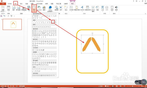 点击插入——外形——选择肆意多边形——画一个如图不相连的角。