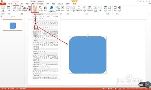起首点击插入——外形——在矩形那边选择圆角矩形——画一个矩形。