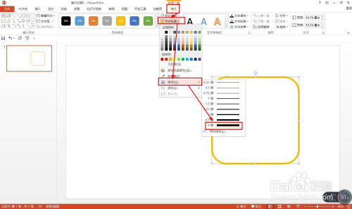 点击格局——外形填充选择白色——外形轮廓选择橙色——粗细设置为6磅。