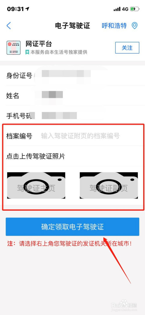 输入驾驶证上的档案编号,上传驾驶证,点击【领取电子驾驶证】