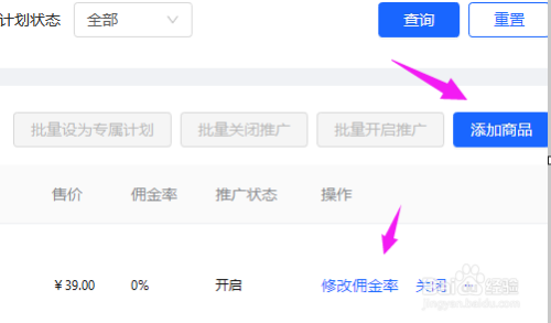 我们点【添加商品】,设置好【佣金率】就好,如图。