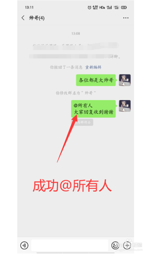 第六步:我们回到聊天界面就可以看到已经@所有人了