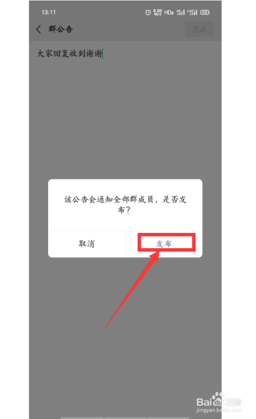 第五步:系统会有一个发布通知布告提醒,点击【发布】即可