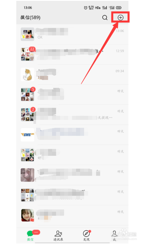 第一步:打开微信首页,点击右上角的【➕】