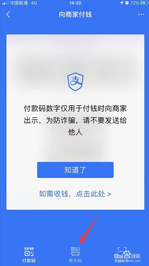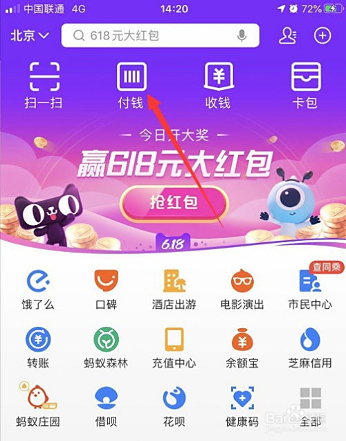 进入首页后,点击“付钱”