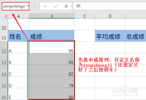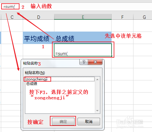 之后我们再对这一列乞降,写出函数之后,我们可以按F3调出粘贴名称,选择该名称即可乞降。