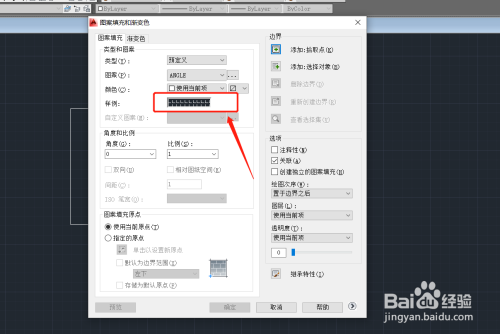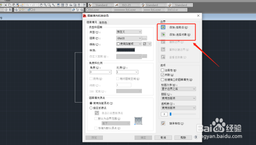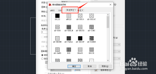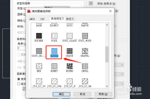 5.在弹出的图案填充选项板中,滑动鼠标中键找到GRASS图例(中文就是草的意思),并点击确定。