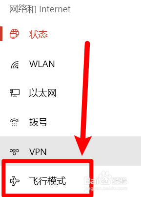 4、然后点击飞翔模式,打开电脑的飞翔模式开关按钮。