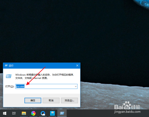2.输入 psr.exe ,点击确定。