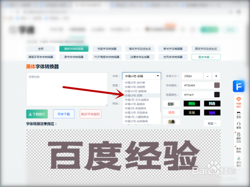 百度搜刮文字在线建造,然后进入到建造页面,输入文字后,选择字体。