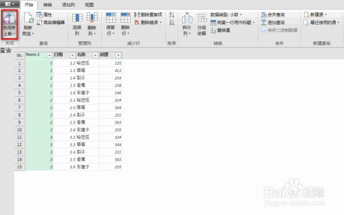 稍等半晌,就能看到PowerQuery中的数据当作功上载到excel表格中,具体如图所示: