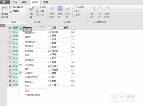 如图为导入到PowerQuery中的多个文件数据,起首,可以删除默认的“Content”列,具体如图所示: