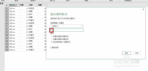 在弹出的对话框中,点击“自界说”,并输入分隔符号“.”,具体如图所示:
