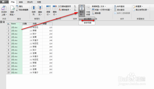 点击“Name”列,在“起头”选项卡下点击“拆排列”,并点击“按分隔符”,具体如图所示: