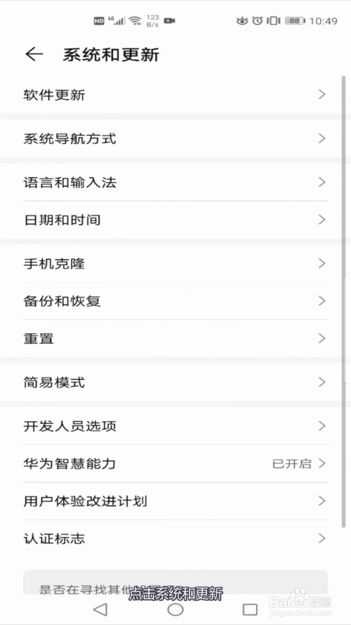2、接着再设置界面滑到最下面,点击系统和更新。