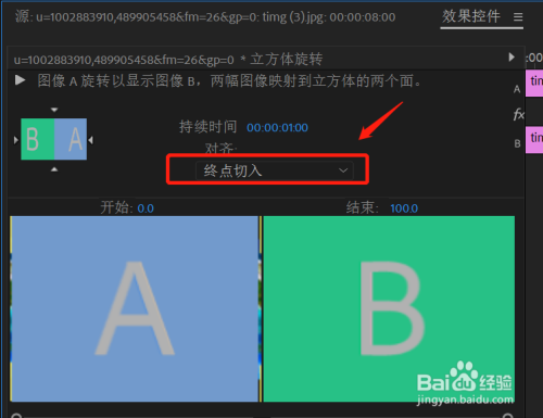 然后点击“终点切入”,即可点窜为终点切入。