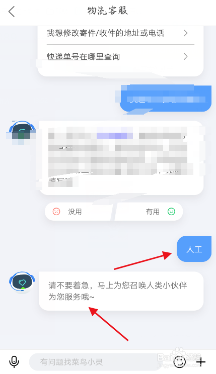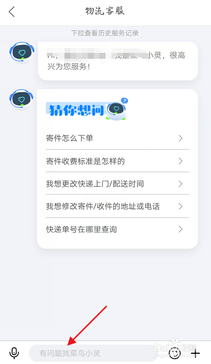 4.物流客服后,答复动静的是机械人,那么就要点击下方的输入框。