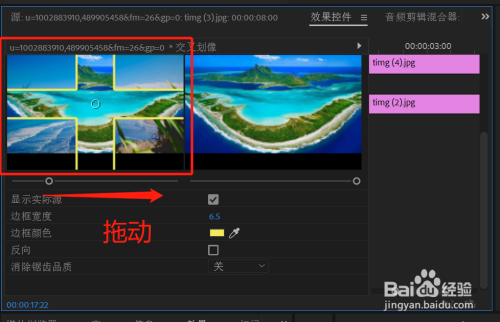 拖动图像下方的小圆点,即可预览交叉划像的边框结果。