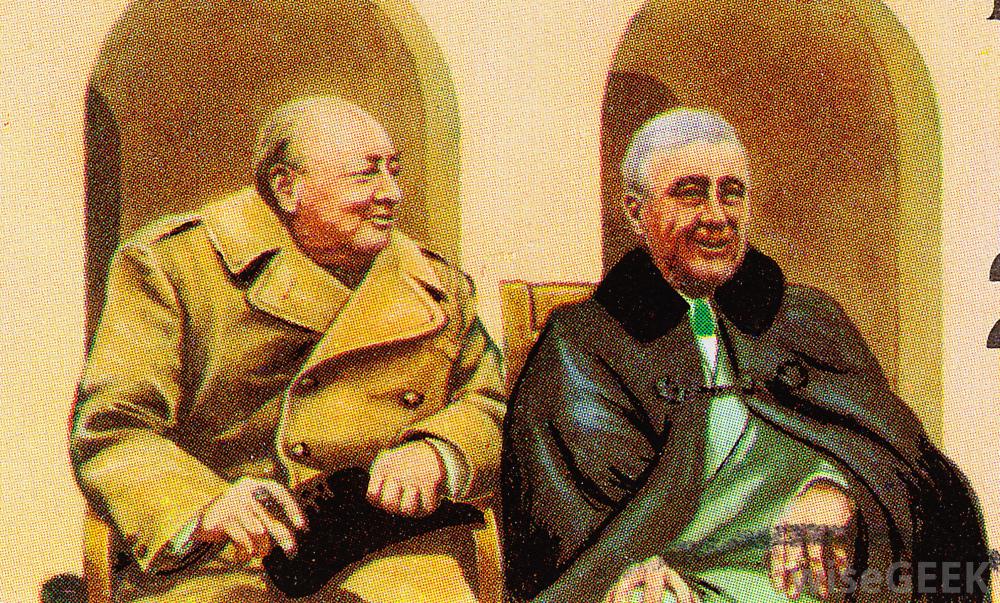 ,温斯顿·丘吉尔(左)是英国首相,富兰克林·罗斯福是美国总统。
