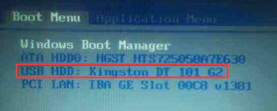4、将U盘插入需要修复的电脑上,按下电源键开机,迅速敲击启动热键,弹出boot选择界面,选择USB选项,回车。