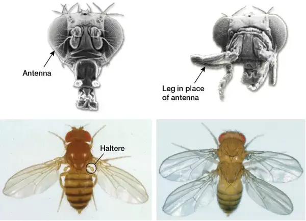 好比,若是 Hox 基因发生变异(如 antennapedia 变异),果蝇的身体上就会长犯错位的器官,好比触角就会长当作腿,肚子上长出触角啦什么的。