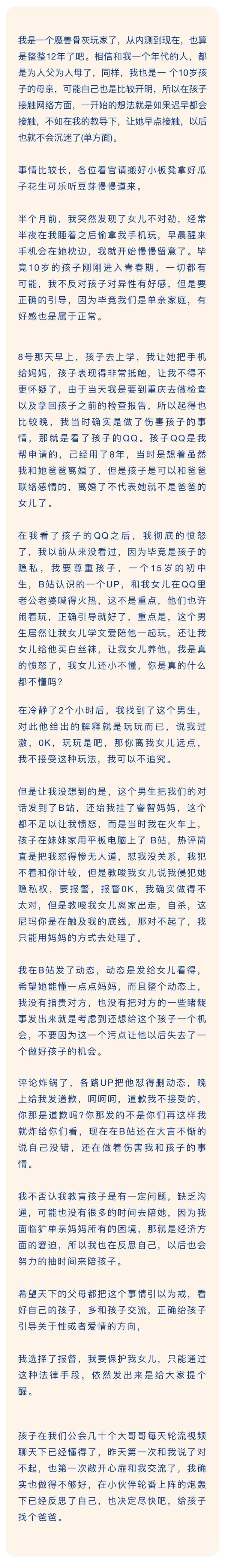 10 岁女孩的妈妈,过后曾经在 B 站发了一封公开信,讲述了孩子当作长的旧事,更是表达了一位母亲深邃深挚的爱: