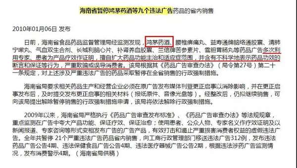 而按照记者的调查,鸿茅药酒的违法记实很是多。