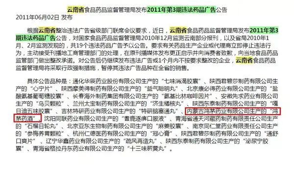 鸿茅药酒被惩罚的记实,均可在国度食物药品监视办理局及其他机构的网站上查询到。(以下为部门举例)
