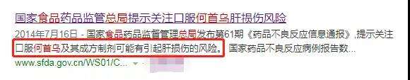 2014 年 7 月 16 日,国度食物药品监视办理总局发布《药品不良反映信息传递》,明白提醒口服何首乌及其当作方制剂可能有引起肝毁伤的风险。