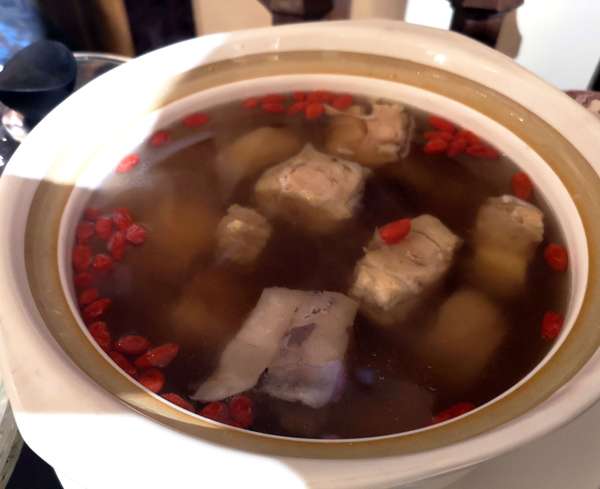这个我感觉这道菜有充数凑价嫌疑了,究竟结果此刻养殖鳄鱼太遍及了。不外汤里的鳄鱼肉巨细平均,可能是两条鳄鱼的。