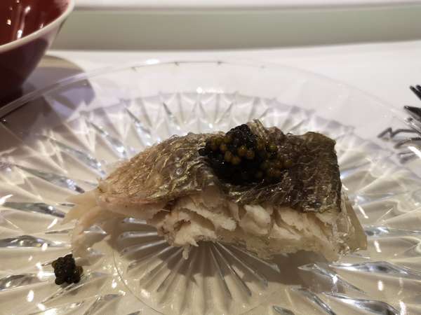 中餐上鱼子酱是不是也有点奇异?不奇异,因为鱼子酱利用也是“花间冻黄鱼”的本来搭配做盖顶的。