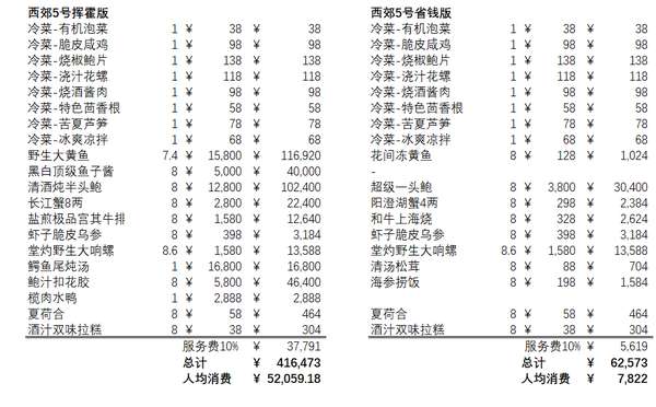 若是用正常去西郊 5 号点菜,大要人均 8000 也有近似的结果,若是不要求这么年夜的鲍鱼的话,人均不跨越 5000。