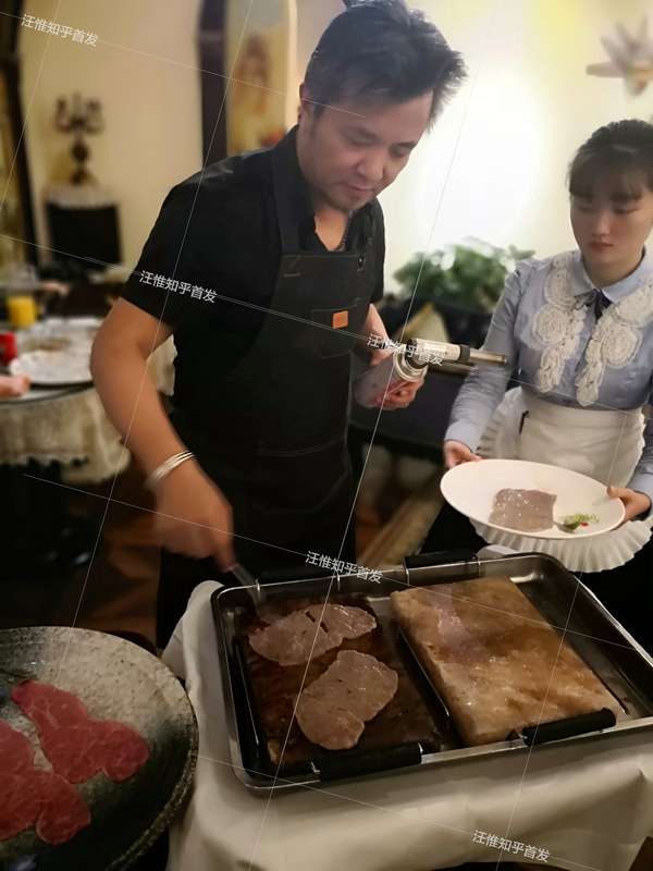 说牛排其实和我们印象里常吃的牛排厚度也分歧,应该算是牛肉片。可是因为油花丰硕,如许处置并无不当。