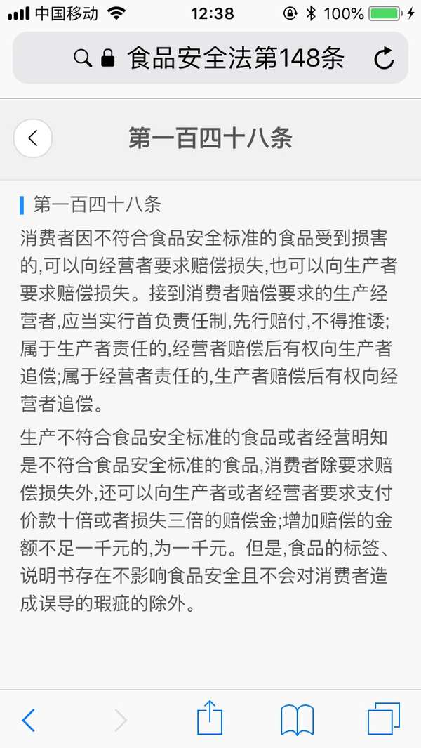 既然走进了法院我就已然决心严酷按照法令划定来给他们一个教训了。在法院调整室听他们扯皮一个多小时,还扯什么共建协调社会大师各让一步啦。最终调整的成果是他们最多赞成退一赔十,我果断要求按照《中华人平易近共和国食物平安法第 148 条》来执行退一赔一千,共一千零一十六。少一分都不可!
