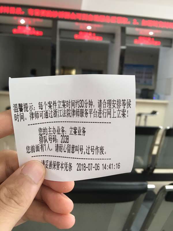 半个小时今后我就在海曙区法院立案年夜厅排上了号……