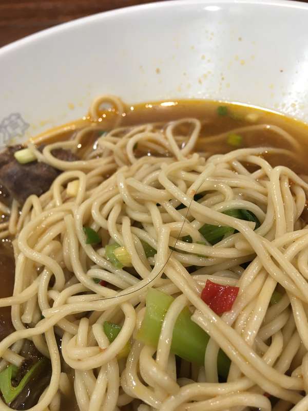 就找他们办事员来 成果他们办事员太嚣张:有根头发很正常嘛!我给你换一碗?