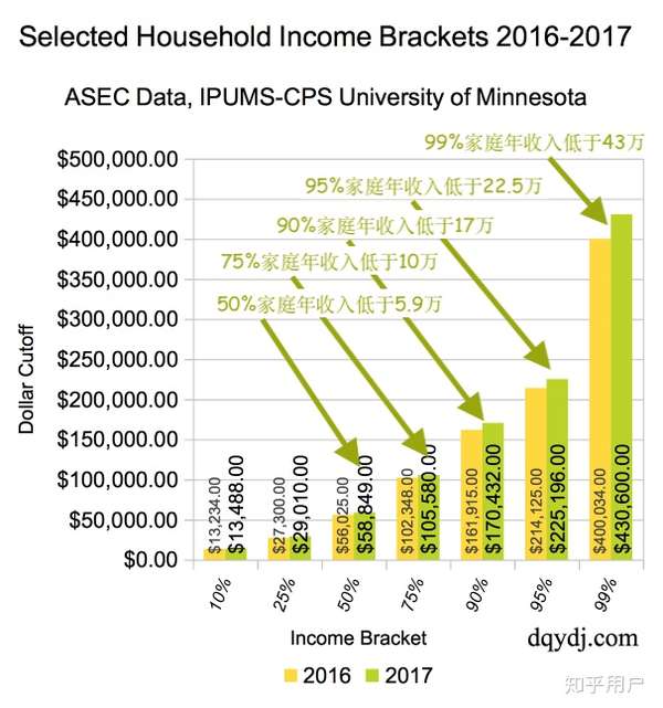 既然大师纠结于“家里三口人”的问题,我只好找新数据:美国有娃家庭收入中位数是 9.5 万。20%的有娃家庭收入低于 50000 美元,当然也意味着 80%的有娃家庭收入比 50000 高。 这个数据是专门指生齿 3+,家里可能一个娃也可能 n 个娃,娃的春秋必然小于 18 岁。