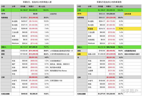 三口之家,每年有 2000 多块钱可以吃喝拉撒睡,这个成果对我本身也挺震撼的。这个数额必定是不敷了,所以必然要在车上省钱、或者从将来养老金 401K 里面少存钱来应付面前的支出。 但若是少交养老金,小我所得税就会增添。