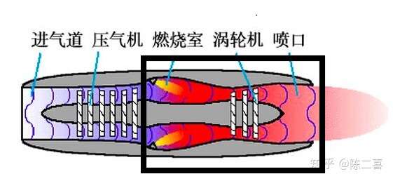 跟火箭策动机一样,为了包管喷管进口端压力足够,需要烧燃料,所以得有一个燃烧室。