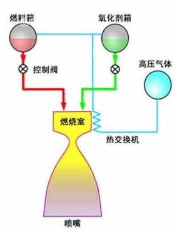 高压罐里出来的气体进入喷管之前先升温,需要一个加热装配,感化同策动机上的燃烧室。