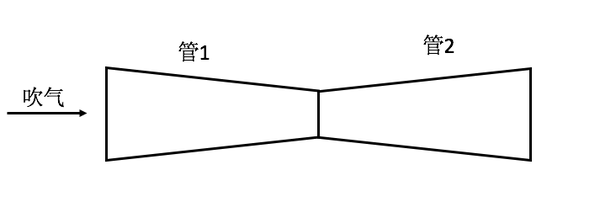 气体在管 1 里面是加快的,加快完毕后,进入管 2 之后,速度怎么变呢?