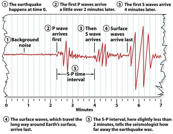 统一次地动会发生分歧性质的地动波,好比 P 波和 S 波的传布速度分歧。就比如说,雷雨天,统一次闪电既会发生闪电,又会发生雷声。而因为闪电的光速和雷声的声速显著分歧,所以我们会先看到闪电,必然时候后,才会听到雷声。