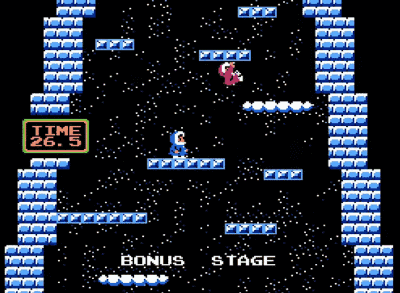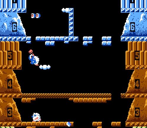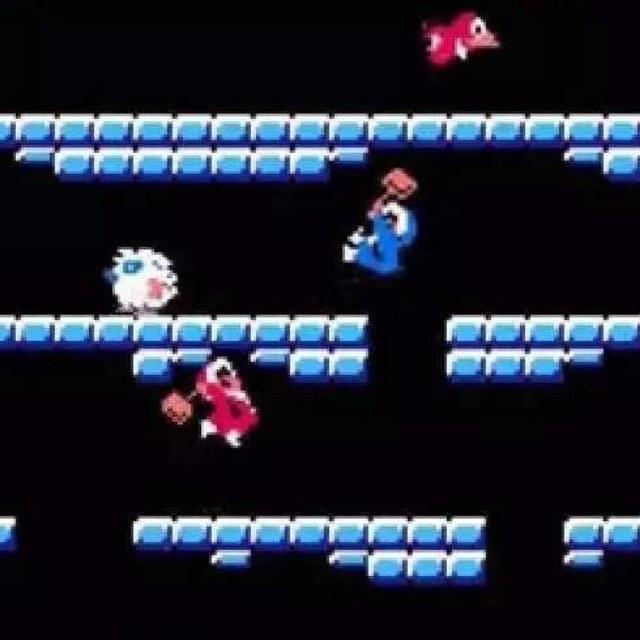 《敲冰块》(Ice Climber)是个有点冷的游戏,很是不适合在冬天玩,有时辰还会和另一个游戏《雪人兄弟》搞混。作为可以同时双打的游戏,《敲冰块》最终也不免沦为互相谗谄的搞基东西,敲失落别人脚下的冰块,反而当作了游戏本家儿要的玩点。