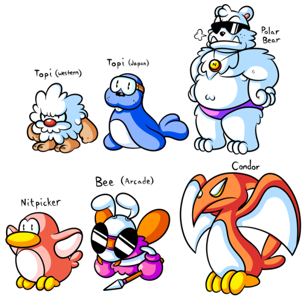 可是,若是你跟美国伴侣谈论《敲冰块》的话,他必然会对你说的小海豹一脸茫然。在美国玩家的童年里,他们碰到的也是一个叫 Topi 的仇敌,可是模样却完全纷歧样。因为国内的《敲冰块》大多来自日版,是以对欧美版仇敌大变样的工作不太领会。