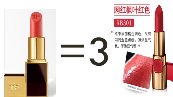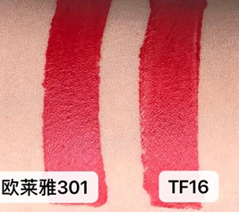 二者显色度都很好,而且颜色附近。欧莱雅 301 比 TF16 更津润,粘杯更严重一些。可是两者都不粘腻,持状结果也都很优异。