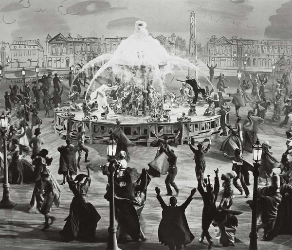 举个例子,1951 年奥斯卡最佳艺术指导奖获奖彩色影片《一个美国人在巴黎》。美术监制塞德里克·吉本斯与美术指导普雷斯顿·艾姆斯将这个连系了法国画家浪漫恋爱故事的音乐剧晋升到了建造设计史上的里程碑高度。